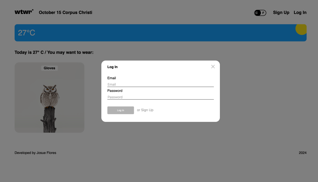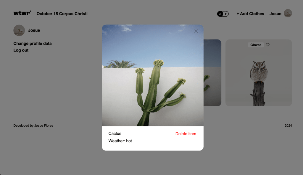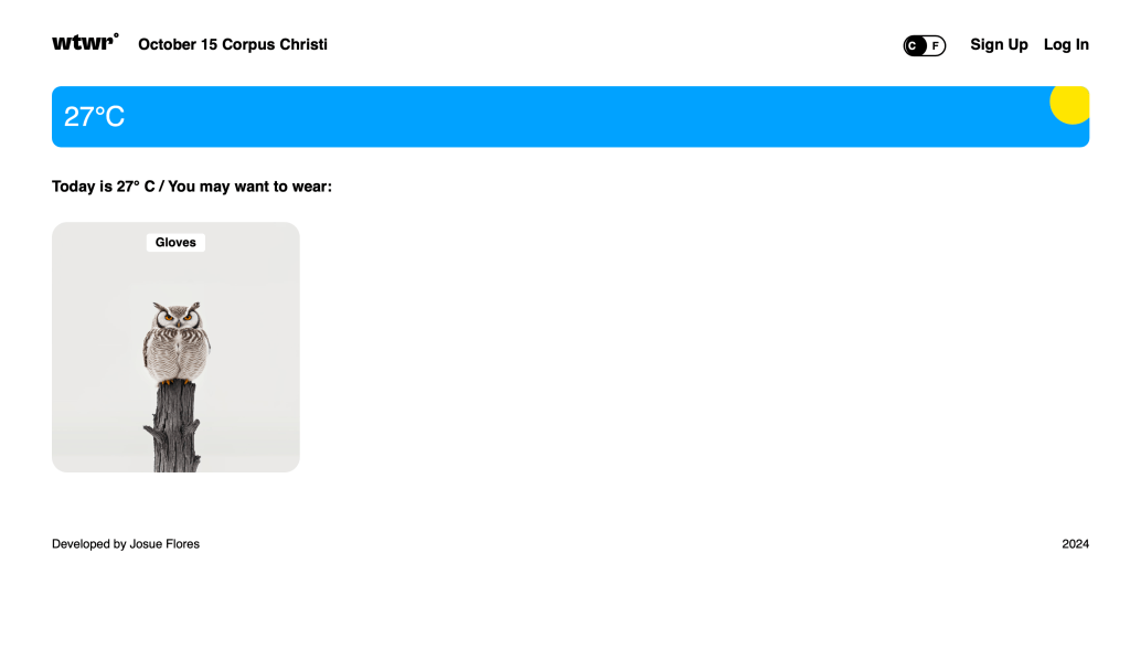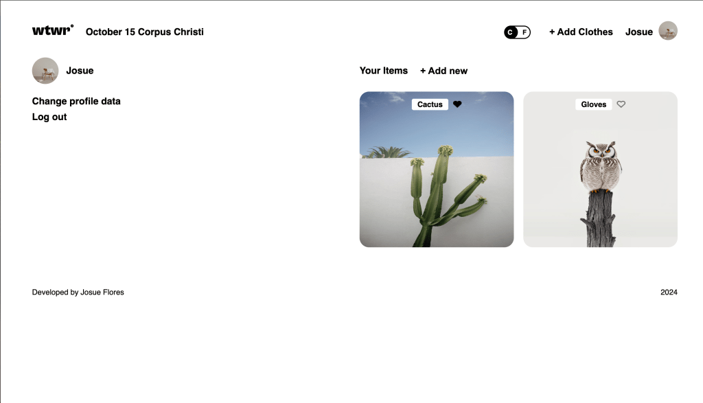 What to Wear web app was the first full-stack project I created. The app was created using React, Express, Mongo, and Node. Users can create an account, then add their own clothing cards. The app will then recommend what to wear, to the user, depending on the weather at the user’s location. The app connects to a third party api, in order to pull weather data. The app features login and authentication, stored in the backend, along with weather cards being stored in the backend.